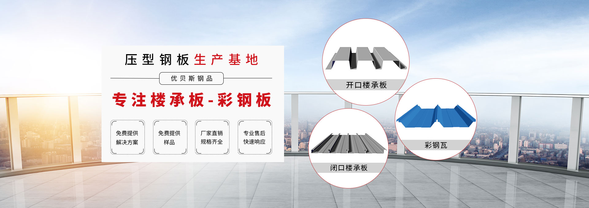 無錫優(yōu)貝斯鋼品有限公司主要生產:樓承板,鋼承板,免澆筑樓承板,壓型鋼板,彩鋼板,閉口樓承板,開口樓承板,縮口樓承板價格優(yōu)惠及相關的鋼結構輔材。 優(yōu)貝斯始終追蹤并處于鋼結構建筑及其圍護系統技術的發(fā)展前沿,預制金屬屋墻板面和樓承板系統。優(yōu)貝斯擁有的技術和豐富實踐一直為客戶提供質量的產品、鋼建筑系統解決方案和貼心的服務。